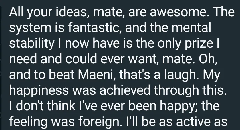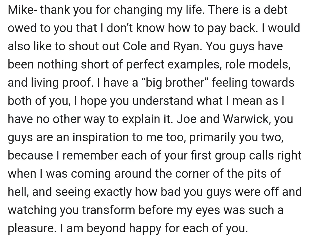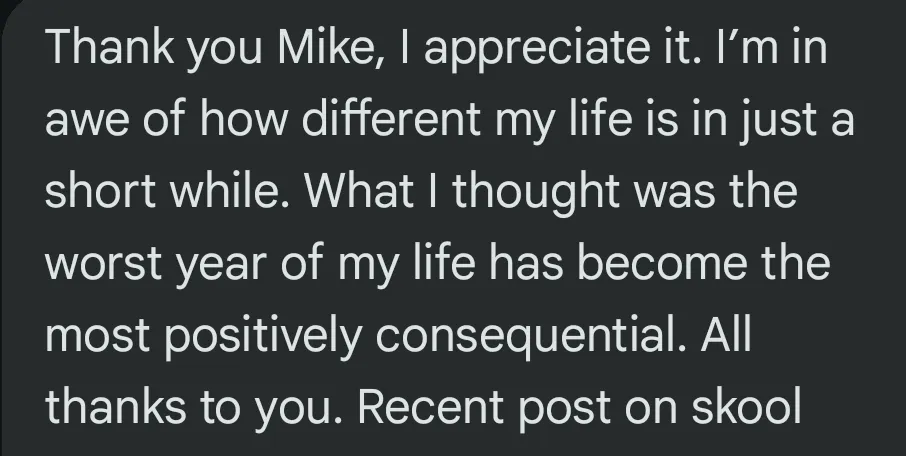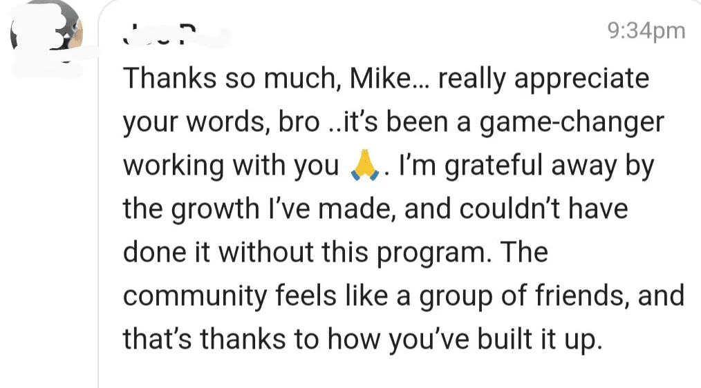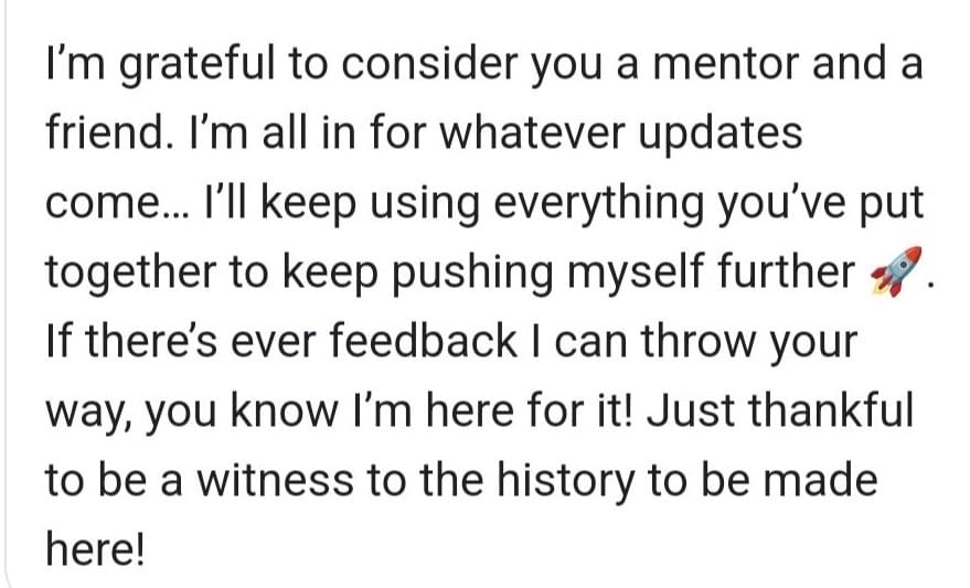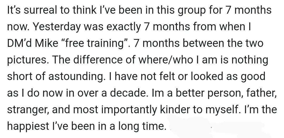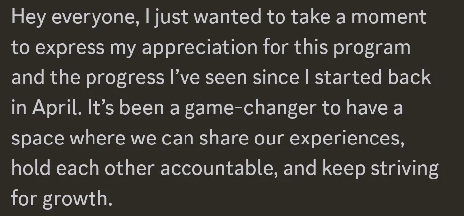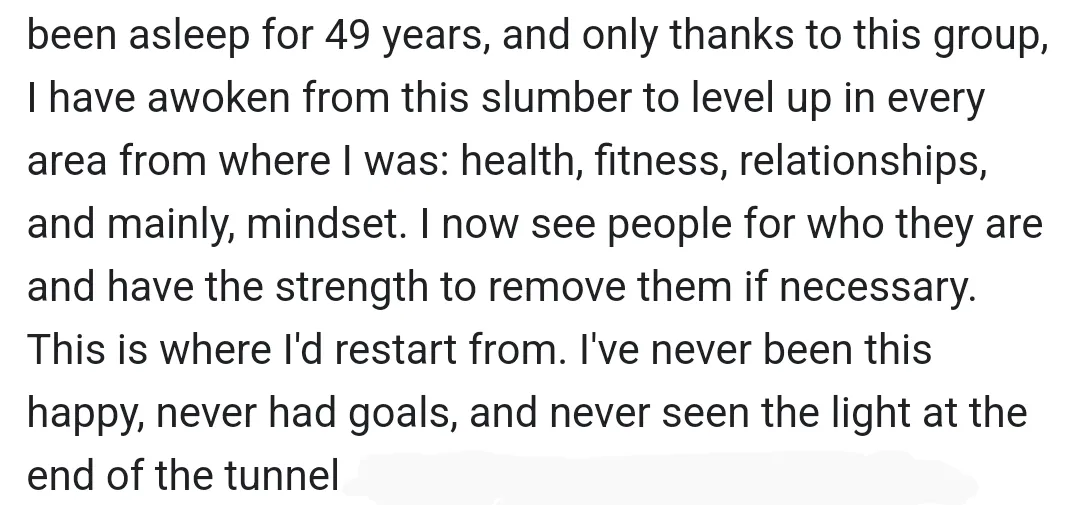"You helped me reach my goals quicker. You kickstarted my progress across the board"