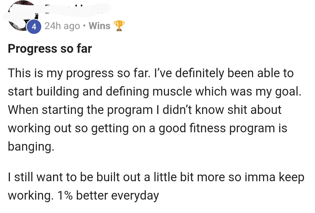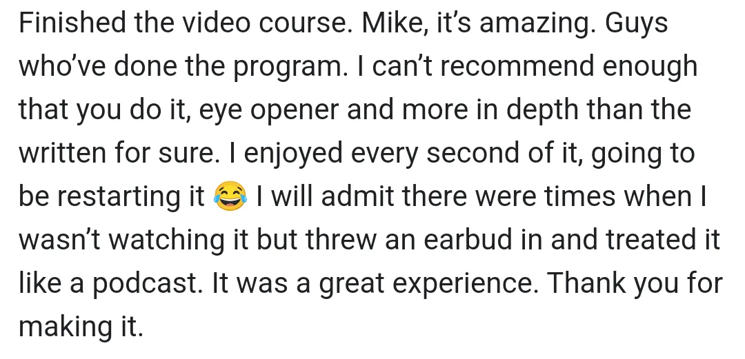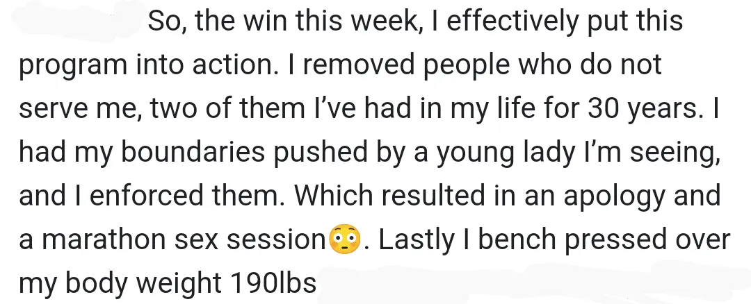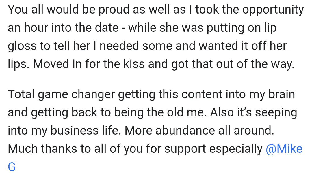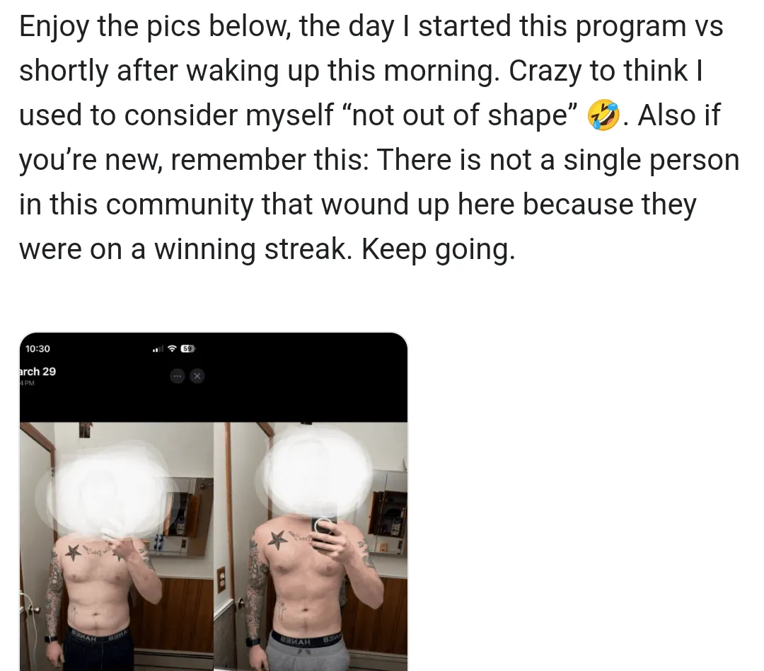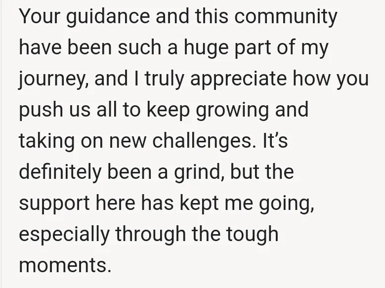 "You helped me reach my goals quicker. You kickstarted my progress across the board"