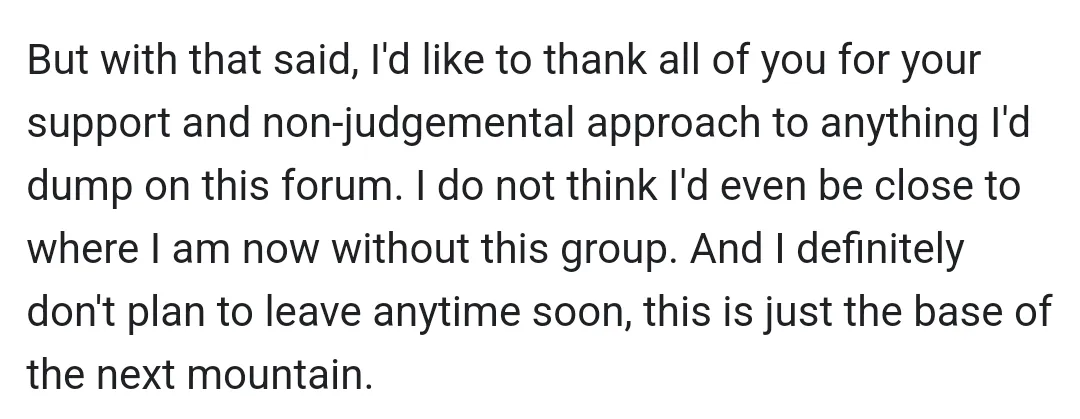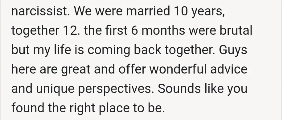 "This community is great; people have been where you've been and are now out of it, just like me"