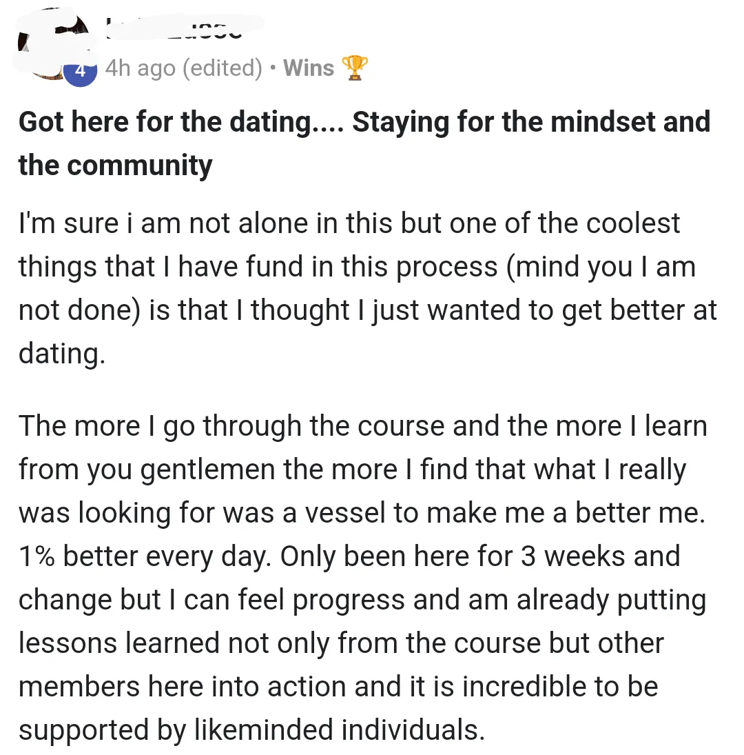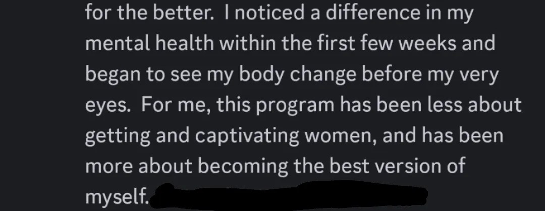 "I've made rapid progress in self-confidence and self-worth in a short amount of time"