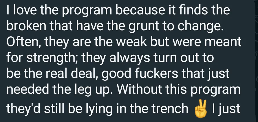 "I am fundamentally a different person. People notice and ask me what happened, and I tell them about the program"